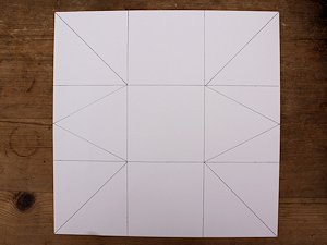 Score at 4″ from all sides of the first 12″ sheet of patterned paper.